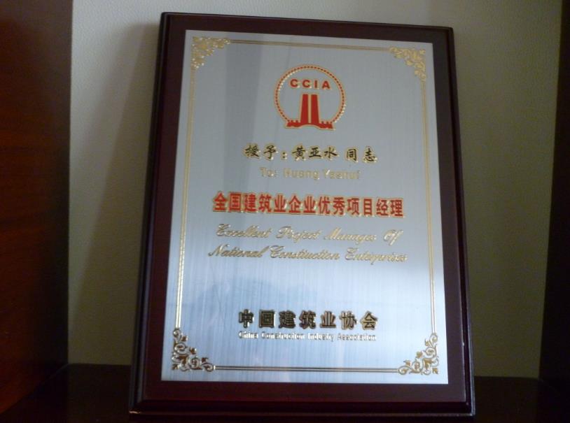 榮獲全國建筑業(yè)企業(yè)優(yōu)秀項目經(jīng)理證書