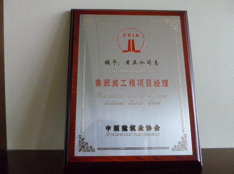 榮獲魯班獎工程項目經(jīng)理證書
