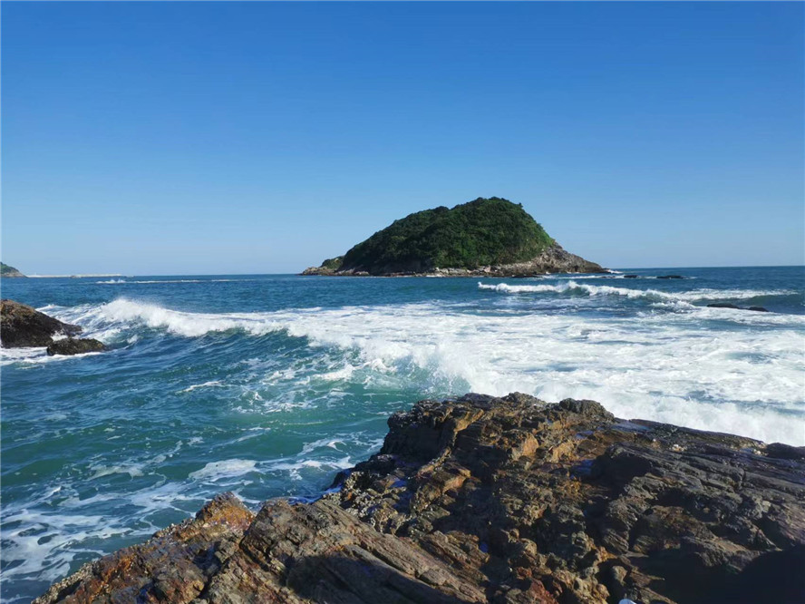 下午15:00點,我們乘坐快艇欣賞海天一色的美麗風光,全情投入海上逍遙,體驗海上風馳電掣的快感。爾后到達聞名遐邇的景點黑排角(只因礁石是黑色的,被驢友起名為“黑排角”),我們踏著海浪奔跑,縱情于海天美景之中,享受一番鼻翼的清爽,踏海浪,躍礁石,觀美景,充分感受身體每個細胞的綻放。